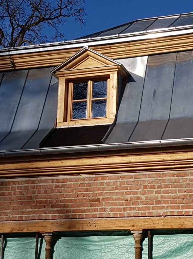 Dachgaubenfenster mit Profilstab aus grundierter Lärche.