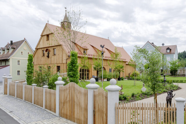 Historisches Hammerschloss mit zugehörigen Nebengebäuden In enger Abstimmung mit dem Denkmalamt entstand der Neubau einer sogenannten „barocken Scheune“. Fenster und Türen wurden aus heimischer Lärche aus dem Hessenreuther Wald gefertigt, bewusst ohne Oberflächenbehandlung. Zum Einsatz kamen zweifach isolierverglaste Elemente mit verdecktem Getriebebeschlag, die historische Anmutung und zeitgemäße Technik miteinander verbinden. Für das Gartenhaus umfassten die…