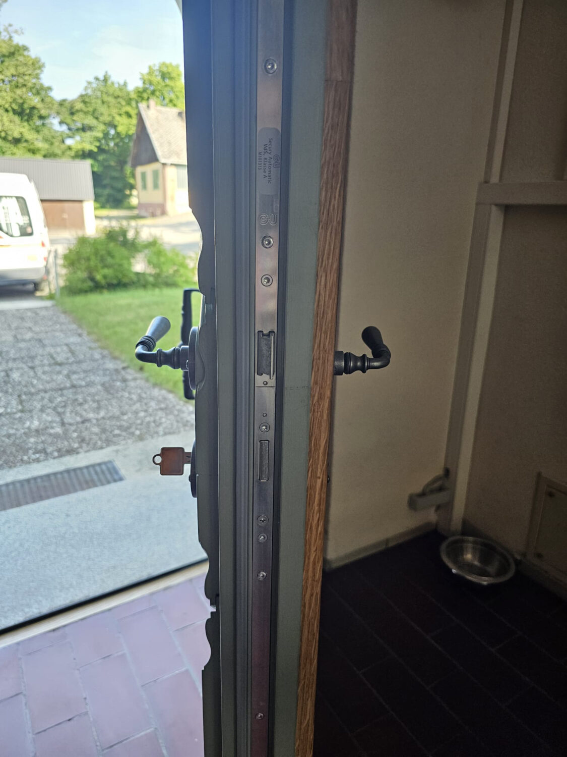 Das Ergebnis ist eine maßgefertigte Haustür, die klassisches Design und moderne Funktionalität perfekt vereint – inklusive hochwertiger Oberfläche und aktueller Sicherheitsverriegelung.