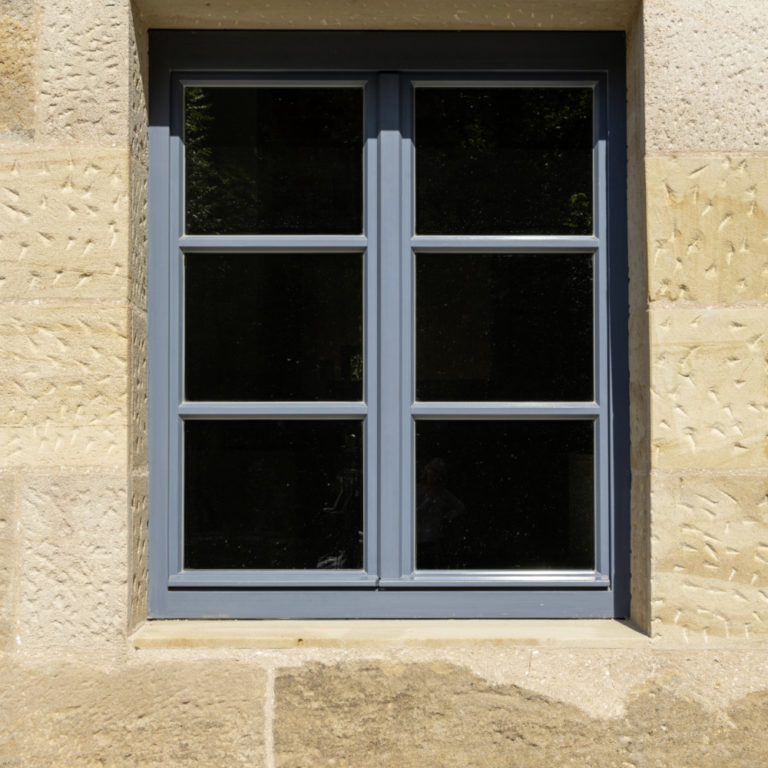 Die Holzfenster für das Gebäude entwickelte Rödl in Abstimmung mit dem Denkmalschutz. Es handelt sich um zweifach verglaste 68-mm- Fenster aus Fichte mit Wetterschenkel und Stockentwässerung, klassisch mit Schlitz und Zapfen verbunden. Die Ansichten sind sehr schmal gehalten. Statt Drehkipp- kamen Drehflügel zum Einsatz, als Beschlag verwendete Rödl den »Multimatic« von Maco. Im EG sind die Fenster einbruchhemmend ausgestattet. Eine Besonderheit ist die Fensteroberfläche: Wie bei vielen anderen Projekten im Denkmalschutz setzte Benjamin Rödl hier Leinöl ein.